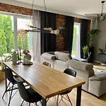 Dom Nad Jeziorem comprende un balcone e una zona spogliatoio con un divano, oltre a comfort moderni come una TV a schermo piatto con canali satellitari. L'alloggio dispone di pavimenti in parquet e presenta un camino in pietra e finestre insonorizzate. La struttura ha 3 camere da letto. Ci sono 2 bagni con un bidet, una vasca da bagno e una doccia e anche essiccatori e teli da bagno.